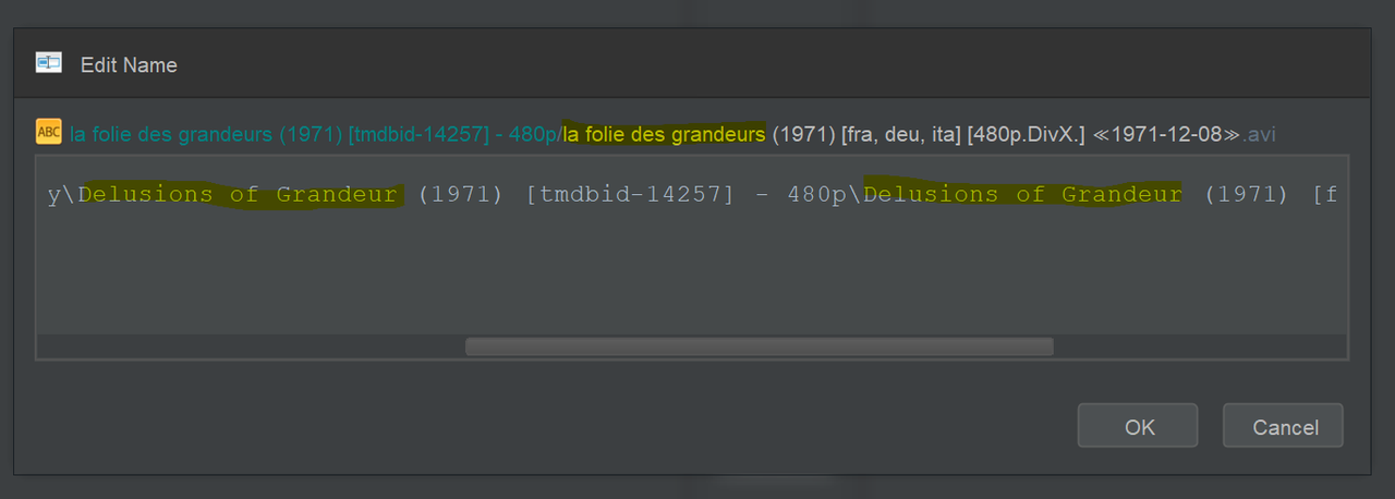 You will want to make your custom format generate the file names you want in the first place. If you want French titles, then you can select